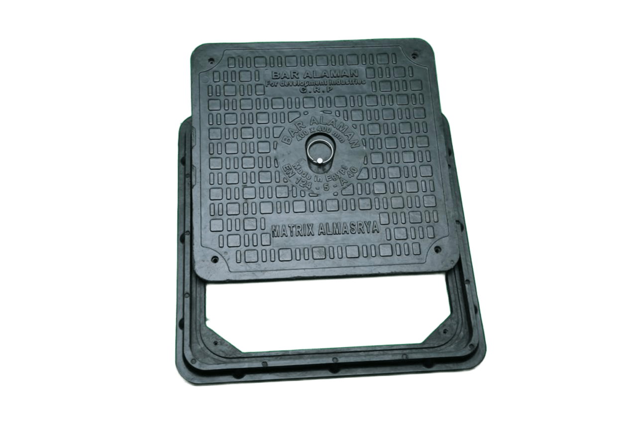 يتكون الخليط المستخدم فى تصنيع الأغطية الخاصة بالفتحات الأرضية لغرف التفتيش والمطابق الخاصة بالصرف الصحى من نوعية عناصر مقاومة لمياه الشرب والصرف الصحى انبعاثاتها حيث انه مسلحة بالالياف الزجاجية بأطوال لا تقل عن 12 مم ويتم تصنيعه في اسطمبات صلب من نوعية خاصة لكى تتحمل ضغوط لا تقل عن 350 بار ودرجات حرارة لا تقل عن 170 درجة مئوية . وهذا الخليط لا يحتوى على اية مواد حديدية او بلاستيكية منعا للسرقة أو اعادة التدوير وذلك بالنسبة للغطاء او الشنبر. وهذه المنتجات معتمدة من الهيئة القومية لمياه الشرب والصرف الصحى ويتم عمل جميع الاختبارات بكافة المراكز البحثية بمصر وذلك طبقا للمواصفات الأوروبية (5-124 EN ) والمواصفات المصرية ( 4207 قرار لسنة 2007 ) .